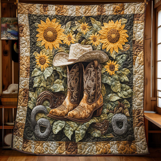 Sunflower Cowboy Boots WY1211026CL Quilt Blanket