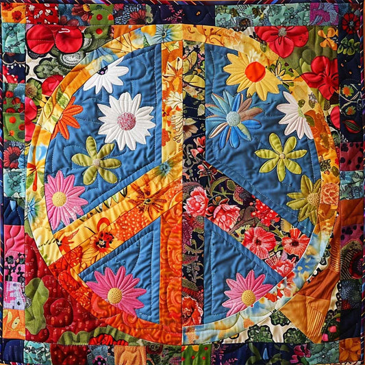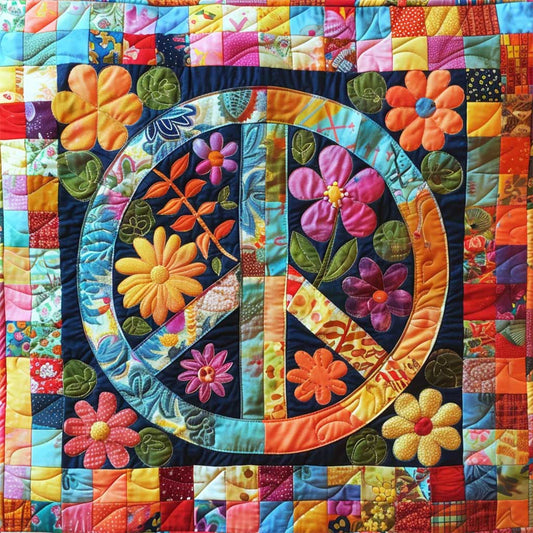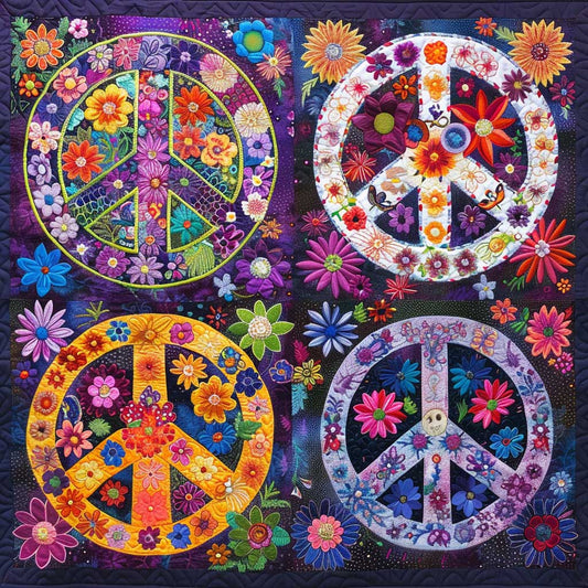 Peace Symbol And Floral WO2108034CL Quilt Blanket